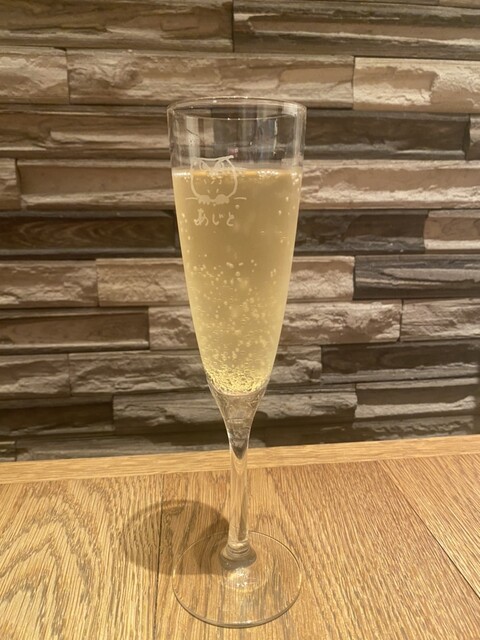 待ってる間にスパークリングワインをいただきつつ